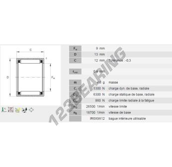 El Buje De Agujas, conocido como HK0912-B-INA INA, tiene un diámetro interior de 9 mm, un diámetro exterior de 13 mm y un espesor de 12 mm.