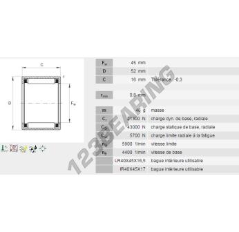El Buje De Agujas, conocido como HK4516-A-HLA-INA INA, tiene un diámetro interior de 45 mm, un diámetro exterior de 52 mm y un espesor de 16 mm.