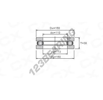 El Rodamiento Axial De Bollas, conocido como 51222 Genérico, tiene un diámetro interior de 110 mm, un diámetro exterior de 160 mm y un espesor de 38 mm.
