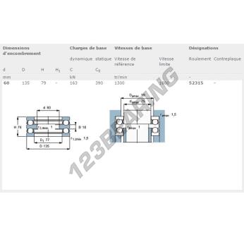 El Rodamiento Axial De Bollas, conocido como 52315-SKF SKF, tiene un diámetro interior de 60 mm, un diámetro exterior de 135 mm y un espesor de 79 mm.
