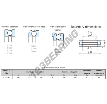 El Rodamiento Axial De Bollas, conocido como 53272U-JTEKT JTEKT, tiene un diámetro interior de 360 mm, un diámetro exterior de 500 mm y un espesor de 130 mm.
