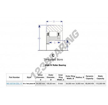 El Rodamiento De Guia, conocido como MG307-34-DDL-17-ENDURO ENDURO, tiene un diámetro interior de 34 mm, un diámetro exterior de 105 mm y un espesor de 34 mm.