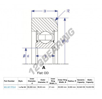 El Rodamiento De Guia, conocido como MG307-FFD-8-ENDURO ENDURO, tiene un diámetro interior de 35 mm, un diámetro exterior de 99.5 mm y un espesor de 29 mm.