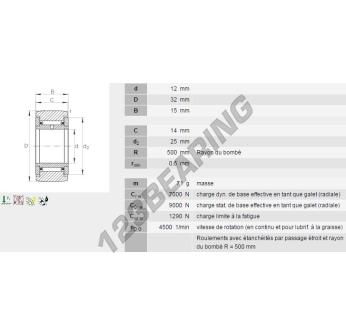 La Leva De Bolas, conocida como NATR12-INA INA, tiene un diámetro interior de 12 mm, un diámetro exterior de 32 mm y un espesor de 15 mm.