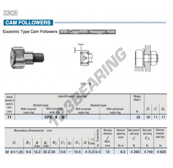El Seguidor De Leva, conocido como CFE8-B-IKO IKO, tiene un diámetro interior de 11 mm, un diámetro exterior de 19 mm y un espesor de 11 mm.