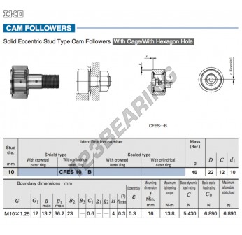 El Seguidor De Leva, conocido como CFES10-B-IKO IKO, tiene un diámetro interior de 10 mm, un diámetro exterior de 22 mm y un espesor de 12 mm.