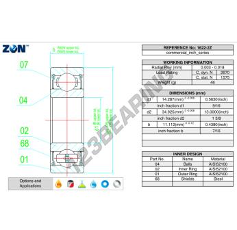 El Rodamiento De Bolas, conocido como 1622-ZZ-ZEN ZEN, tiene un diámetro interior de 14.2 mm, un diámetro exterior de 34.9 mm y un espesor de 11.1 mm.