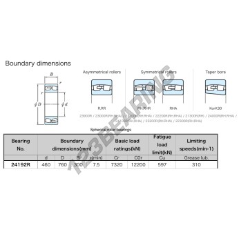 El Rodamiento De Bolas, conocido como 24192-R-JTEKT JTEKT, tiene un diámetro interior de 460 mm, un diámetro exterior de 760 mm y un espesor de 300 mm.
