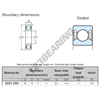 El Rodamiento De Bolas, conocido como 6207-2RD-JTEKT JTEKT, tiene un diámetro interior de 35 mm, un diámetro exterior de 72 mm y un espesor de 17 mm.