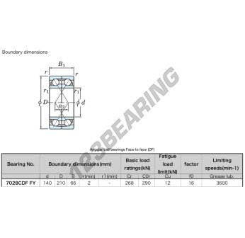El Rodamiento De Bolas, conocido como 7028-CDF-FY-JTEKT JTEKT, tiene un diámetro interior de 140 mm, un diámetro exterior de 210 mm y un espesor de 66 mm.