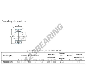 El Rodamiento De Bolas, conocido como 7052-BDB-FY-JTEKT JTEKT, tiene un diámetro interior de 260 mm, un diámetro exterior de 400 mm y un espesor de 130 mm.