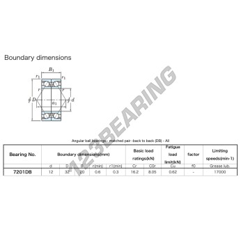 El Rodamiento De Bolas, conocido como 7201-DB-JTEKT JTEKT, tiene un diámetro interior de 12 mm, un diámetro exterior de 32 mm y un espesor de 20 mm.