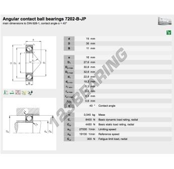 El Rodamiento De Bolas, conocido como 7202-B-XL-JP-FAG FAG, tiene un diámetro interior de 15 mm, un diámetro exterior de 35 mm y un espesor de 11 mm.