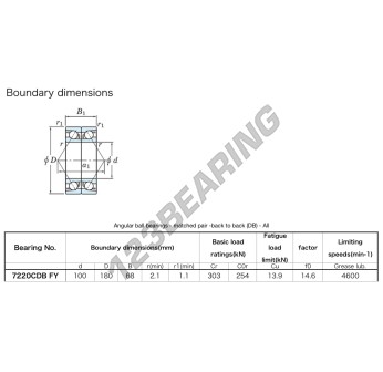 El Rodamiento De Bolas, conocido como 7220-CDB-FY-JTEKT JTEKT, tiene un diámetro interior de 100 mm, un diámetro exterior de 180 mm y un espesor de 68 mm.