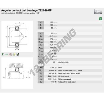 El Rodamiento De Bolas, conocido como 7221-B-MP-FAG FAG, tiene un diámetro interior de 105 mm, un diámetro exterior de 190 mm y un espesor de 36 mm.