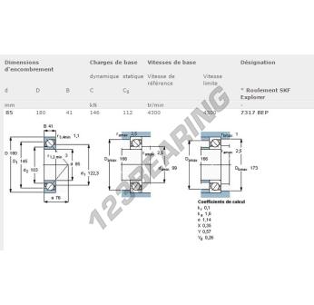 El Rodamiento De Bolas, conocido como 7317-BEP-SKF SKF, tiene un diámetro interior de 85 mm, un diámetro exterior de 180 mm y un espesor de 41 mm.