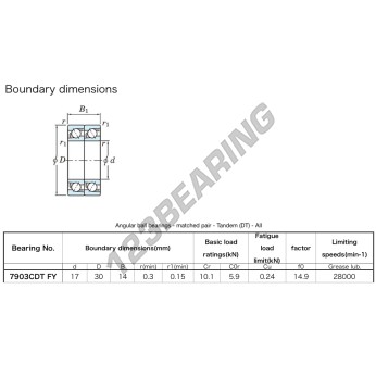 El Rodamiento De Bolas, conocido como 7903-CDT-FY-JTEKT JTEKT, tiene un diámetro interior de 17 mm, un diámetro exterior de 30 mm y un espesor de 14 mm.