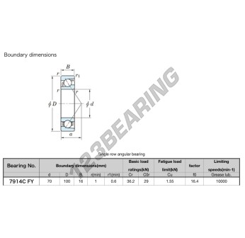 El Rodamiento De Bolas, conocido como 7914-C-FY-JTEKT JTEKT, tiene un diámetro interior de 70 mm, un diámetro exterior de 100 mm y un espesor de 16 mm.