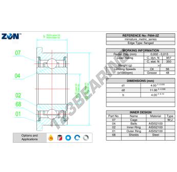 El Rodamiento De Bolas, conocido como F694-2Z-ZEN ZEN, tiene un diámetro interior de 4 mm, un diámetro exterior de 11 mm y un espesor de 4 mm.
