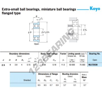 El Rodamiento De Bolas, conocido como MLF2508-JTEKT JTEKT, tiene un diámetro interior de 2.5 mm, un diámetro exterior de 8 mm y un espesor de 2.8 mm.