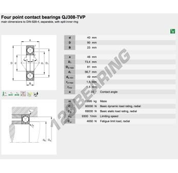 El Rodamiento De Bolas, conocido como QJ308-XL-TVP-FAG FAG, tiene un diámetro interior de 40 mm, un diámetro exterior de 90 mm y un espesor de 23 mm.