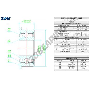 El Rodamiento De Bolas, conocido como SFR144-2Z-ZEN ZEN, tiene un diámetro interior de 3.2 mm, un diámetro exterior de 6.4 mm y un espesor de 2.8 mm.