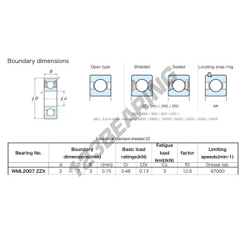El Rodamiento De Bolas, conocido como WML2007-ZZX-JTEKT JTEKT, tiene un diámetro interior de 2 mm, un diámetro exterior de 7 mm y un espesor de 3 mm.