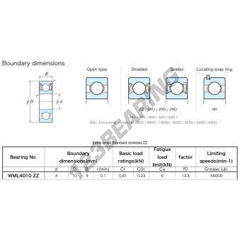 El Rodamiento De Bolas, conocido como WML4010-ZZ-JTEKT JTEKT, tiene un diámetro interior de 4 mm, un diámetro exterior de 10 mm y un espesor de 4 mm.