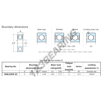 El Rodamiento De Bolas, conocido como WML5009-ZZ-JTEKT JTEKT, tiene un diámetro interior de 5 mm, un diámetro exterior de 9 mm y un espesor de 3 mm.