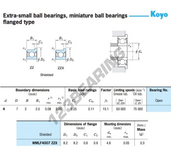 El Rodamiento De Bolas, conocido como WMLF4007-ZZX-JTEKT JTEKT, tiene un diámetro interior de 4 mm, un diámetro exterior de 7 mm y un espesor de 2 mm.