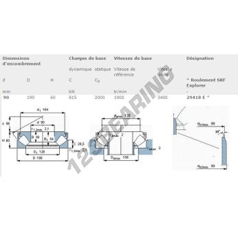 El Rodamiento Axial De Rodillos, conocido como 29418-E-SKF SKF, tiene un diámetro interior de 90 mm, un diámetro exterior de 190 mm y un espesor de 60 mm.
