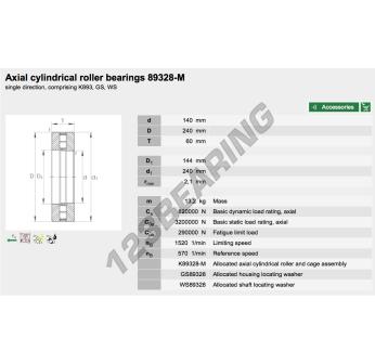El Rodamiento Axial De Rodillos, conocido como 89328-M-INA INA, tiene un diámetro interior de 140 mm, un diámetro exterior de 240 mm y un espesor de 60 mm.