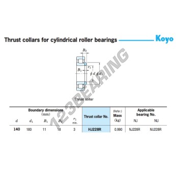 El Rodamiento Rodillos, conocido como HJ228R-JTEKT JTEKT, tiene un diámetro interior de 140 mm, un diámetro exterior de 180 mm y un espesor de 11 mm.