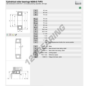 El Rodamiento Rodillos, conocido como N209-E-XL-TVP2-C3-FAG FAG, tiene un diámetro interior de 45 mm, un diámetro exterior de 85 mm y un espesor de 19 mm.