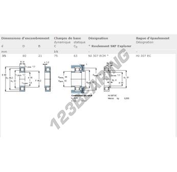 El Rodamiento Rodillos, conocido como NJ307-ECM-SKF SKF, tiene un diámetro interior de 35 mm, un diámetro exterior de 80 mm y un espesor de 21 mm.
