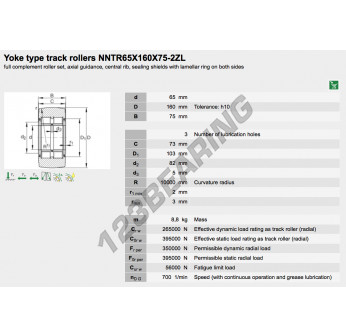 El Rodamiento Rodillos, conocido como NNTR65X160X75-2ZL-INA INA, tiene un diámetro interior de 65 mm, un diámetro exterior de 160 mm y un espesor de 75 mm.