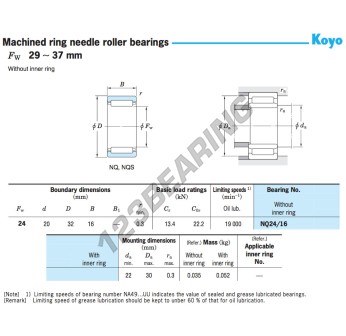 El Rodamiento Rodillos, conocido como NQ24-16-JTEKT JTEKT, tiene un diámetro interior de 24 mm, un diámetro exterior de 32 mm y un espesor de 16 mm.