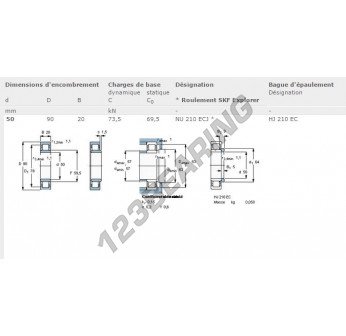 El Rodamiento Rodillos, conocido como NU210-ECJ-SKF SKF, tiene un diámetro interior de 50 mm, un diámetro exterior de 90 mm y un espesor de 20 mm.