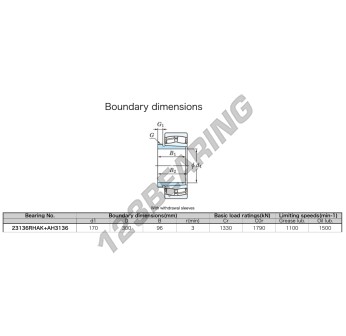 El Rodamiento De Rótulas En Rodillos, conocido como 23136RHAK-AH3136-JTEKT JTEKT, tiene un diámetro interior de 170 mm, un diámetro exterior de 300 mm y un espesor de 96 mm.