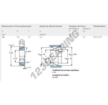 La Rótula Gac conocida como GAC30F-SKF tiene un diámetro interior de 30 mm y un diámetro exterior de 55 mm.
