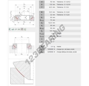 La Rótula Ge conocida como GE50AW-INA INA tiene un diámetro interior de 50 mm, un diámetro exterior de 130 mm y un espesor de 42.5 mm.