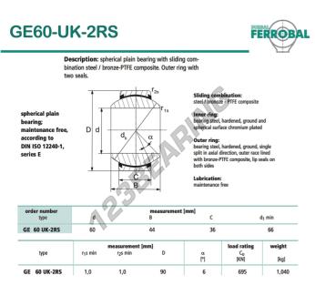 La Rótula Geew conocida como DGE60-UK-2RS-DURBAL DURBAL tiene un diámetro interior de 60 mm, un diámetro exterior de 90 mm y un espesor de 36 mm.