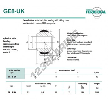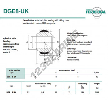 La Rótula Geew conocida como DGE8-UK-DURBAL DURBAL tiene un diámetro interior de 8 mm, un diámetro exterior de 16 mm y un espesor de 5 mm.