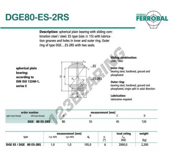 La Rótula Geew conocida como DGE80-ES-2RS-DURBAL DURBAL tiene un diámetro interior de 80 mm, un diámetro exterior de 120 mm y un espesor de 45 mm.