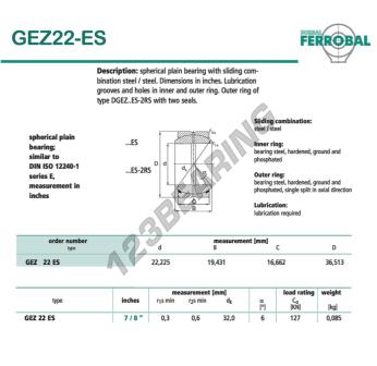 La Rótula Geew conocida como GEZ22-ES-DURBAL DURBAL tiene un diámetro interior de 22.225 mm, un diámetro exterior de 36.513 mm y un espesor de 16.662 mm.