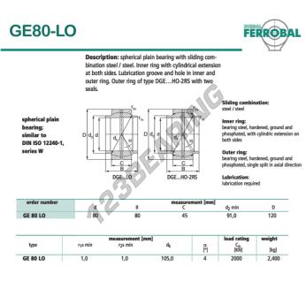 La Rótula Geg conocida como GE80-LO-DURBAL DURBAL tiene un diámetro interior de 80 mm, un diámetro exterior de 120 mm y un espesor de 45 mm.
