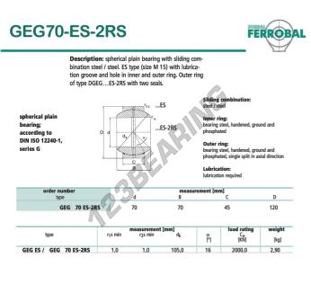 La Rótula Geg conocida como GEG70-ES-2RS-DURBAL DURBAL tiene un diámetro interior de 70 mm, un diámetro exterior de 120 mm y un espesor de 45 mm.
