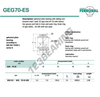 La Rótula Geg conocida como GEG70-ES-DURBAL DURBAL tiene un diámetro interior de 70 mm, un diámetro exterior de 120 mm y un espesor de 45 mm.