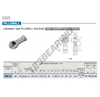 La Rótula Phs conocida como PHS18-IKO IKO tiene un diámetro interior de 18 mm, un diámetro exterior de 42 mm y un espesor de 16.5 mm.