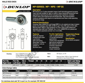 La Rótula Sa conocida como MPL-06-5-DUNLOP DUNLOP tiene un paso de rosca de , un diámetro interior de 7.938 mm, un diámetro exterior de 25.4 mm y un espesor de 10.312 mm.